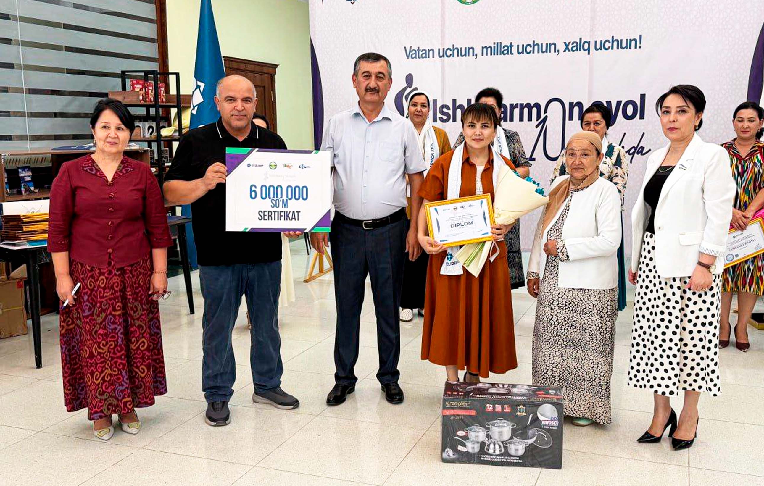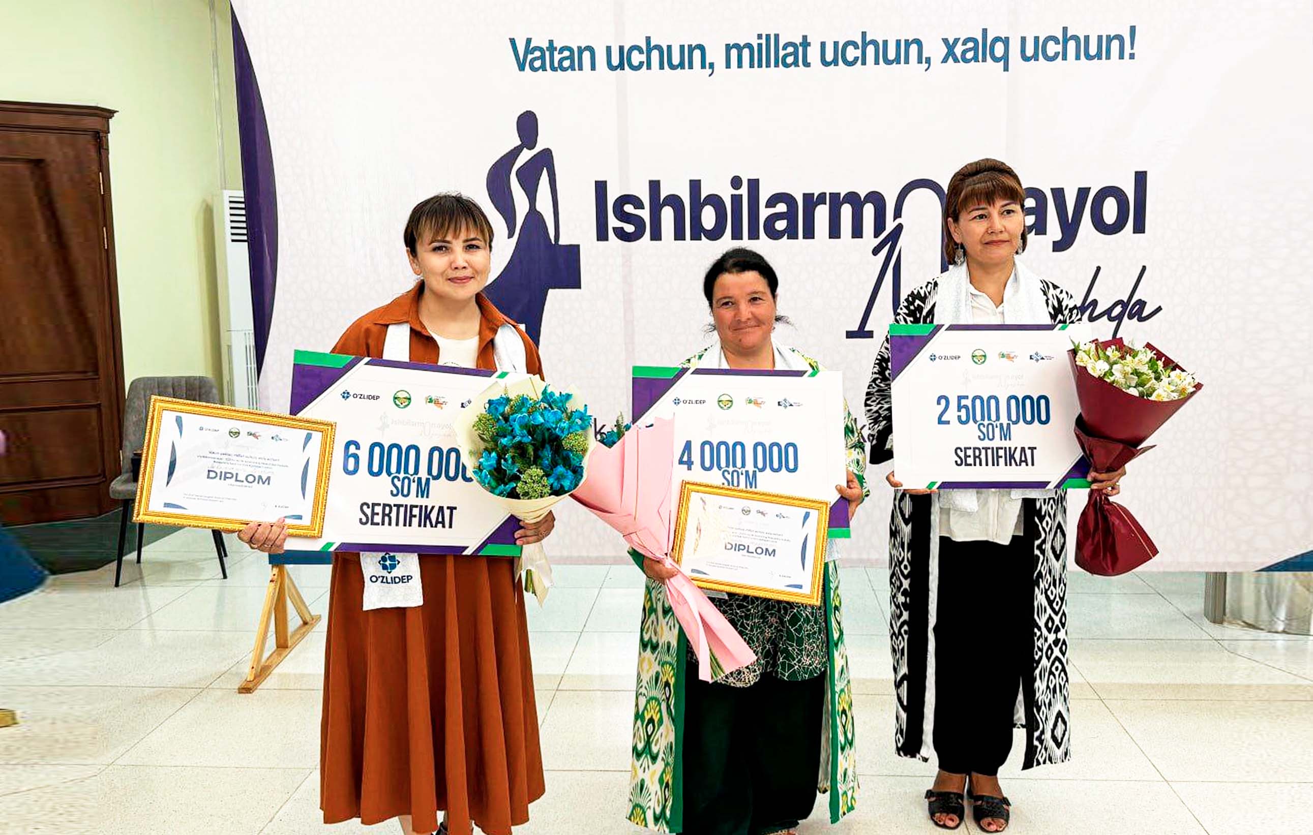 Tanlov natijalariga ko‘ra 2-o‘rin Qo‘shko‘pir tumanidan “Xosiyonli Jasur” fermer xo‘jaligi rahbari  Sayyora Turayevaga, 3-o‘rin gul bosilgan gazlamalar va chokli buyumlar yo‘nalishi bo‘yicha yakka tartibdagi tadbirkor Mehribon Tangriyevaga nasib qildi.